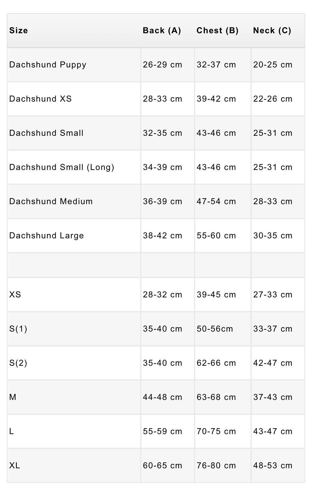 - Haus of Hound Sherpa jacket comes in 4 sizes for all breeds (XS-M) and an additional size guide for Miniature Dachshunds which comes in 6 sizes (DP-DL).
