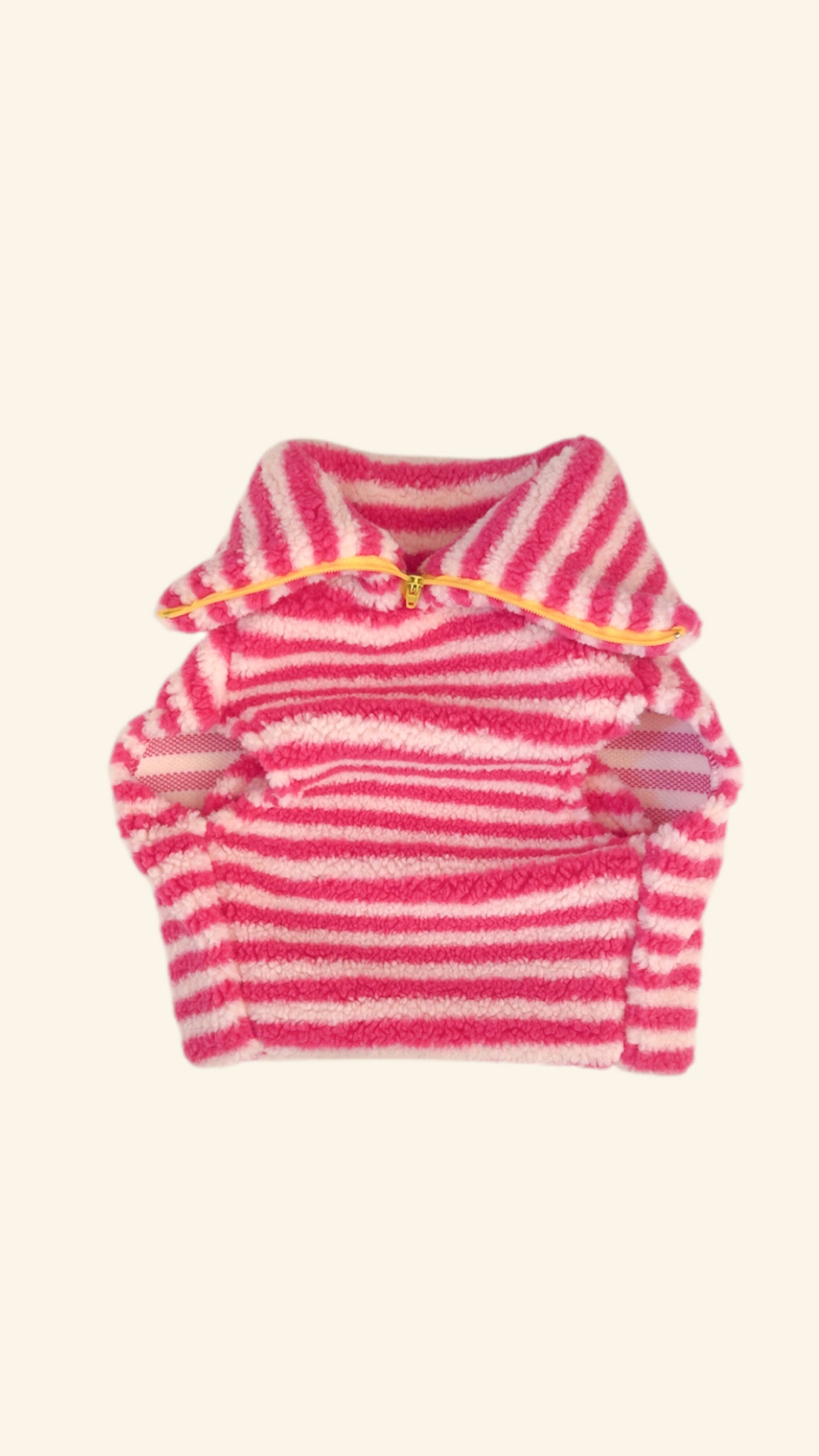 - Marshmallow – Pink & cream stripes with a white or yellow zip