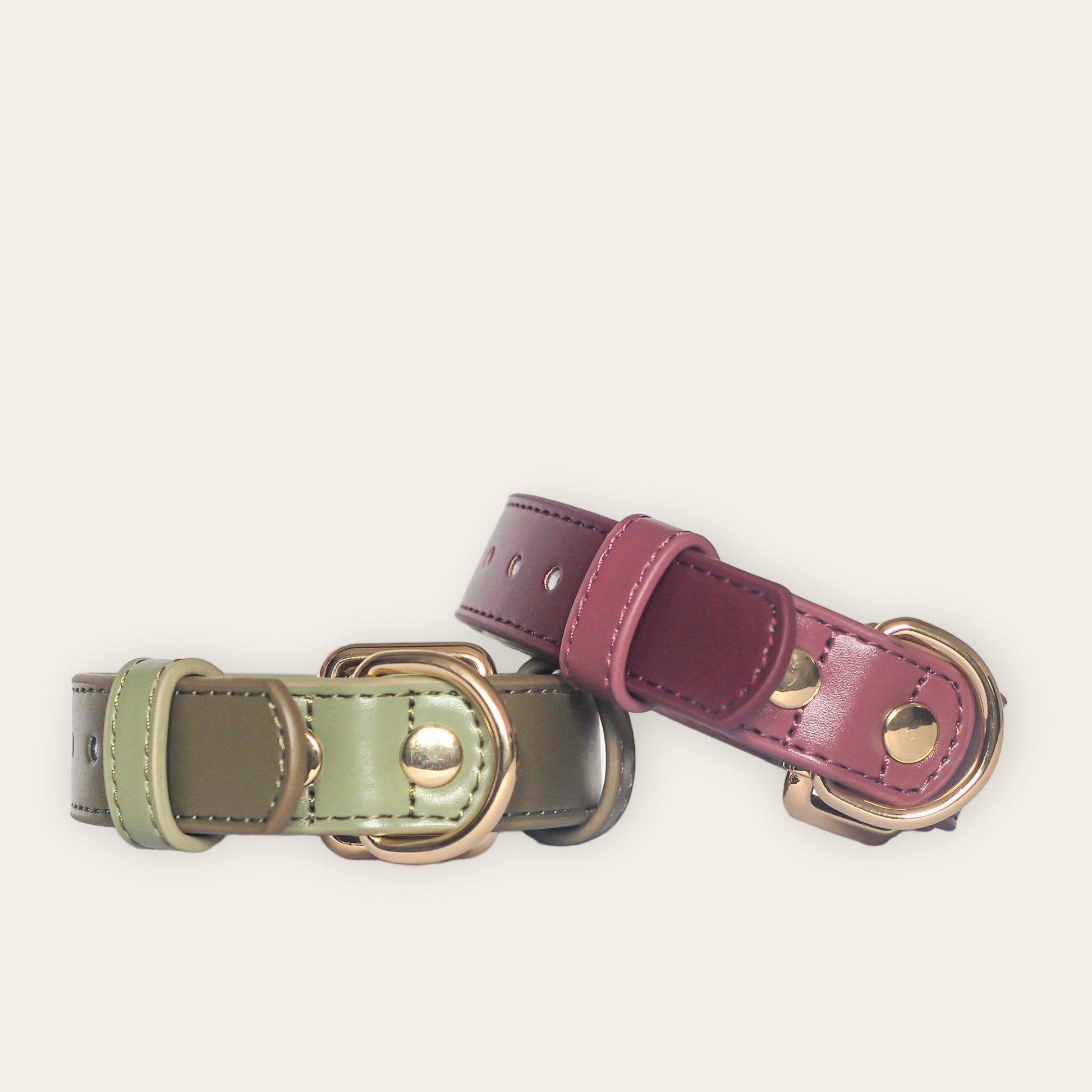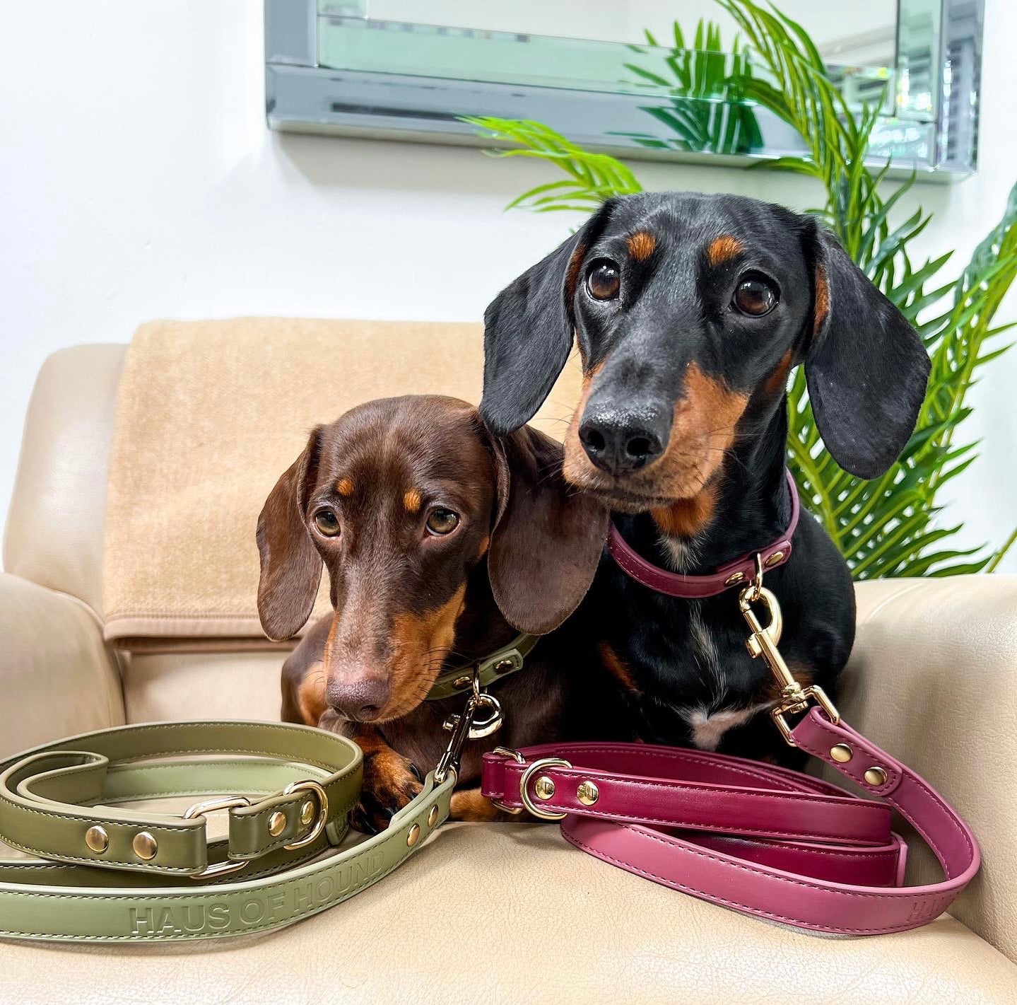 Our two toned vegan leather collars are made to the highest quality, whilst looking stylish and feeling soft on your pet. This range is available in a selection of colours to suit all occasions. The Haus of Hound collars are suitable for large breeds with the L and also puppies or smaller breeds with the XS, not to mention all the pooches in between.